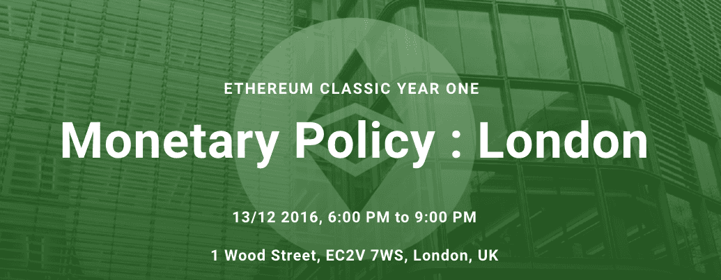 ETC End of Year and Monetary Policy Event The Event is hosted by one of the leading financial services law firms, Eversheds LLP, at their London St. Pauls Head Quarters. Attendance is free, but you need to register for the event. More information at the Event web site.