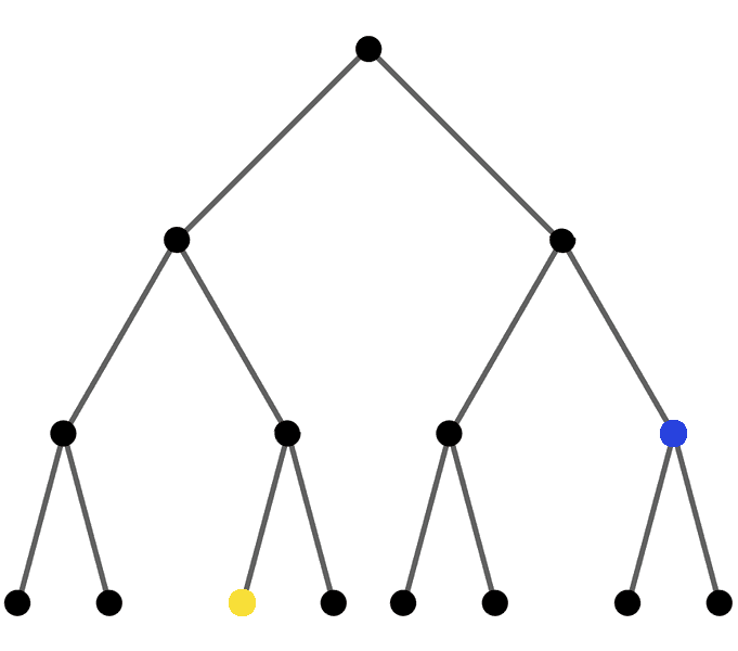 Therefore, the yellow dot corresponds to the key "010". The blue dot corresponds to the key "11". A similar procedure is used for all tries to determine keys.